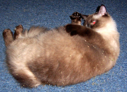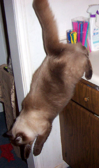 | I adopted Chloe in August 2004. As you can see, she is a gorgeous kitty. She was very hissy, and that never changed, but we realized fast that we didn't need to fear those hisses. She never bit. She did hit me in the face 2x the day I brought her home...but since she was declawed it didn't hurt. Though she was hissy, and afraid of people she didn't know, she was extremely sweet and loving. She also had a straw fetish. Every single day she would steal the straw from my cup. She loved to play with them and chew on them...I think she liked the Diet Pepsi flavor too. She was a fat butterball. Very beautiful You will notice I speak of her in the past tense. While I really wanted her to work out, she just was not suited for my home. She wanted to be the only cat and she would not use the litter box. Not even when she was given her own room. When she was given her own room she decided to use the bed as her litterbox...and she wouldn't stop.