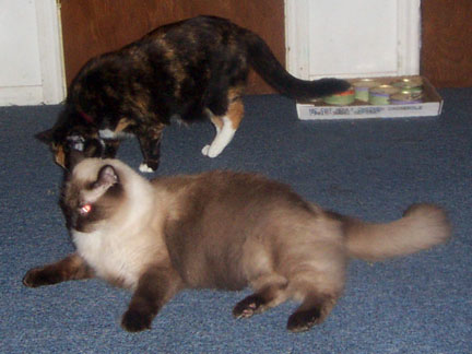 So I found her a new home as an only cat. The lady had a very expensive self cleaning (like with water and a blow dryer! and it hooked up in the utility room). She had full warning of why I had to find her a new home. I don't know if full disclosure was really given to me regarding Chloe's history when I adopted her, but I wanted to try to find her a FOREVER home...and to me that meant telling why she had to go. The woman who adopted her never contacted me again to tell me how it all worked out...maybe I should call her one day... but as long as I don't I can believe everything is wonderful for her in her new home... I do miss her, but Trinity was here first and she definately isn't going anywhere. |