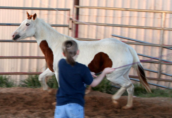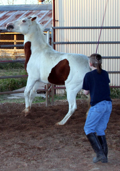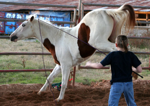 She only kicked at the whip...but it was scary enough!